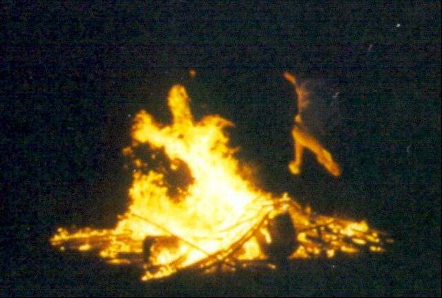 Leaping the bonfire. |