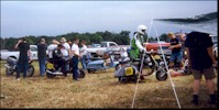 Lining up for the ride to the lake. |